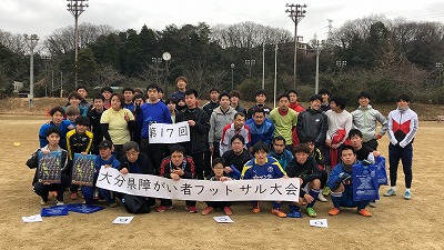 | 第17回フットサル大会報告(2020/1/25) 1月25日(土)に大分大学陸上競技場において、第17回障がい者フットサル大会が行われました。 この大会は、大分県障がい者サッカー協会が主催し行われたものです。 今回は、アンプティサッカー日本代表の加藤誠さん(大分市在住)をゲストにお迎えしました。また、中津市寺町クリニックのソーシャルサッカーのメンバー8名、サカたのメンバー14名の参加となり、いつもに増してにぎやかな大会となりました。 開会式では、加藤さんによるお話とデモンストレーション。 どんなふうに身体を使い、どんなふうにシュートを放つのか、見せていただくことができました。また、見事なリフティングを披露してくださった時には、「すごい!」と拍手が起こりました。加藤さん、ありがとうございました。(加藤さんにはDチームのゲームに入っていただきました。) その後、A〜D、4グループに分かれ、20分の試合を2回行いました。 あちこちから歓声が沸き、必死にボールを追いかける選手の皆さん。 初めて出会う方とも同じチームのメンバーとして一緒にボールを追いかけているうちに声を掛け合ったり、ハイタッチをしたり・・・。 参加の皆さんの笑顔がうれしい日となりました。 開始時までは小雨が降り続き、心配しましたが、試合中は雨に降られることなく無事に大会を終えることができました。 閉会式では敢闘賞、優秀賞、最優秀賞の表彰も行われ、皆さん、笑顔で帰途につきました。 この大会は、また8月に行う予定です。みなさんの笑顔にまた出会えますように・・・。 当日の様子をご覧ください。 ![]() ![]() ![]() ![]() ![]() ![]() ![]() ![]() ![]() ![]() 参加した選手、スタッフのみなさん、お疲れ様でした。 |