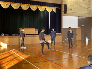 | 令和4年度障がい者サッカー体験教室」inさくらの杜(2022/11/12) 11月10日(木)に大分市東大道町にある県立さくらの杜高等支援学校で「サッカー体験教室」を実施しました。 当協会が実施する学校を募集したところ、応募があり実現したものです。 この活動は「障がいのある児童生徒がサッカー体験教室に参加し、ボールを蹴ること、仲間とゴールを目指すことなどをとおし、サッカーへの関心を高め、生涯にわたり運動を継続し健康的な生活を送るきっかけとなることを目指す」ために実施しています。 指導するのは、大分県障がい者サッカー協会(OFAD)の有資格者で、大分大学体育会サッカー部の協力を得て、実施しました。 当日の様子をご覧ください。 ![]() 松尾会長の自己紹介 ![]() コーチのデモンストレーション ![]() 名前を呼びながら手を使ったパス ![]() 名前を呼びながら足でのパス ![]() ![]() ミニゲーム ![]() ![]() ![]() ![]() 最後にプレゼントをお渡ししました。 |