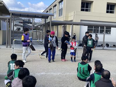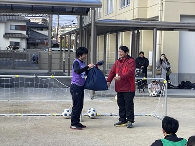 | 第20回大分県障がい者フットサル大会with大分大学体育会サッカー部報告(2025.1.25) 2025年1月25日(土)、大分県立さくらの杜高等支援学校グラウンドにて第20回大分県障がい者フットサル大会with大分大学体育会サッカー部を実施しました。 参加者は全員で35名。FC太陽さんややエントラーダさんなど大分県障がい者サッカー協会に加盟する多くのチームが参加して行われ、35人を4つのコートに分け、それぞれ2チーム作ってミニゲームを3試合行いました。 開会式を行った10時のグラウンドは、風が吹き、やや曇り空でしたが、そんなことは関係ない選手の皆さんはゲームが始まるとボールを追いかけ、走り回る元気な姿が見受けられました。 閉会式では、成績発表が行われ、各グループから敢闘賞、優秀賞が発表され、最後に本日の最優秀賞が発表されました。賞をもらった選手のみなさんは笑顔いっぱいでした! 最後は全員で記念撮影。 当日の様子をご覧ください。 参加した選手、スタッフのみなさん、お疲れ様でした。 |