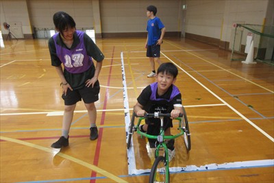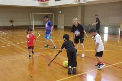 | 『第3回障がい者サッカー体験会』を開催しました(2025/6/29) 大分県障がい者サッカー協会 今吉 豊 第3回目となる 『障がい者サッカー体験会』 を2025年6月29日(日)に別府市太陽の家内にある サンスポーツセンターで開催しました。 県内でサッカーを楽しんでいる障害者の方々は、【大分県障がい者サッカー協会】 の活動により徐々に増えては来ていますが、まだまだ広く情報が行き渡っていないのが現状で、体験会を継続していく事でより多くの方達に障がい者サッカーの普及活動が行えたらと思っている次第です。 当日は、大分大学の Adapted Sports Club (アダプティド・スポーツとは、誰でもが気軽にスポーツを楽しめるようにルールや用具を工夫し適合 【adapt】 させて行うスポーツの事)から4名の学生さんが支援に来ていただき参加者と共にサッカーを楽しんでもらいました。 前回も参加して頂いた方は、以前よりとても動きが良くなりボールを一生懸命に追いかける姿には成長が感じられ体験会を継続して行っている意義を実感しました。 また、今回の体験会のプログラムの中に 【フレームランナー】 の体験コーナーも設けました。 体験した参加者は、普段感じられないスピード感にビックリすると共に目を輝かせて楽しんでいました。 ※ 【フレームランナー】 とは = ペタルのない三輪車でサドルと胸当てで体を支え足で地面を蹴って進もので、障がいの種別によっては、足の運びと体重負荷のトレーニングになり筋力強化・姿勢の改善・持久力の向上などの効果が見られる障がい者用の運動器具です。 ![]() 全体練習 ![]() パス練習 ![]() ドリブルからのシュート ![]() ゲーム ![]() ゲーム ![]() ゲーム ![]() フレームランナーの説明 ![]() フレーム体験 ![]() 集合写真 |