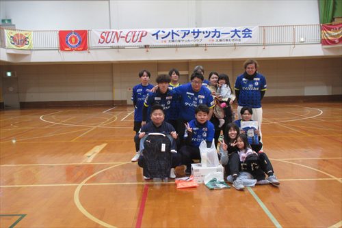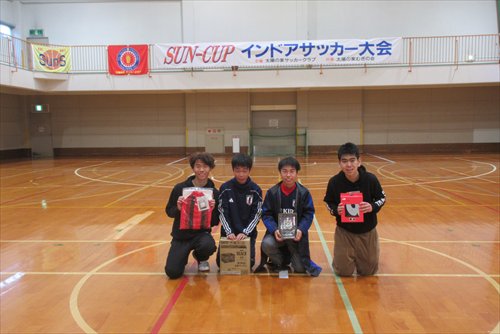 | 『第33回SUN-CUPインドアサッカー大会』を開催しました(2025/12/15) 2025年12月7日(日) 別府市亀川の 【サンスポーツセンター】 にて、33回目となる大会を開催いたしました。 この大会は、【太陽の家サッカークラブ】 が主催し 【大分県障がい者サッカー協会】 他にての後援を頂き行われました。 今回は、 障害者チームが 【知的サッカー大分県選抜】 【エントラーダ】 【FC太陽フリーダムス】 の3チーム 女子チームが、【LFC Amiriza 杵築】 【ヴェルスパ大分レディース U-15】 の2チーム 一般チームが、 【FCバイアス】 【C,P,B,R】 の2チームで、 総勢7チームによるリーグ戦にて行いました。 今大会もチーム間のレベルの公平性を保つために一般チームの 【FCバイアス】 には、?アンダー2タッチ?の制限を付けてゲームを行いました。 大会に先駆けて、今回初参加の 【C,P,B,R】 さんは、フリーダムスの定期練習会に数回参加して頂き準備万全で臨んだ結果第4位の成績を残しました。 また、同じく初参加の 【LFC Amiriza 杵築】 さんは将来性有望なレディース達の活躍にて、今回優勝チームの 【FCバイアス】 からも勝利しましたが、最終結果、同勝点ながら得失点差により惜しくも準優勝に終わりました。 大会内容として、参加各チームは年々レベルアップが見られ僅差のゲームや白熱した展開のゲームが多く見られました。 今回も 『年齢・性別・障害の有無を問わず』 という大会趣旨に賛同して頂きサッカーを純粋に楽しんでいただけたと思います。 また来年34回目のとなる大会では、より良い大会を目指して努力していきたいとチーム・スタッフ一同頑張っていきますので、よろしくお願いいたします。 大会結果は、下記のとおりとなりました。 優勝 FCバイアス 準優勝 LFC Amiriza 杵築 第3位 知的サッカー大分県選抜 第4位 C,P,B,R 第5位 FC太陽フリーダムス 第6位 エントラーダ 第7位 ヴェルスパ大分レディース U-15 大会については 【FC太陽フリーダムス】 のホームページにも掲載しています。 また、同様に 【インスタグラム】 にも大会他の情報等をアップしていますので、こちらもご覧頂ければと思います。 ![]() ゲーム全景 ![]() 知的選抜 Vs エントラーダ ![]() ヴェルスパレディース Vs エントラーダ ![]() フリーダムス VS C.P.B.R ![]() フリーダムス Vs エントラーダ ![]() アミリーザ Vs C.P.B.R ![]() ヴェルスパレディース Vs アミリーザ ![]() 集合写真 ![]() 優勝 バイアス ![]() 準優勝 LFC Amiriza 杵築 ![]() 第3位 知的サッカー 大分県選抜 ![]() 第4位 C.P.B.R ![]() 第5位 FC太陽フリーダムス ![]() 第6位 エントラーダ ![]() 第7位 ヴェルスパ大分レディース U-15 |